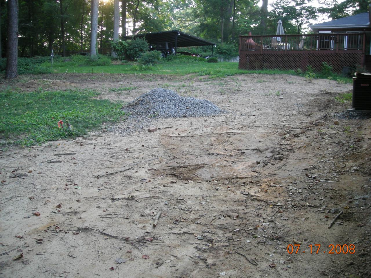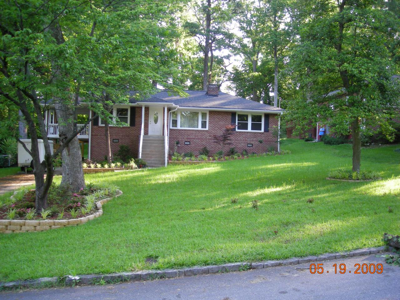 Leveled and smoothed front yard then removed rocks and other debris. Installed sod in summer of 2008. Picture taken in May of 2009 while sod is still dormant