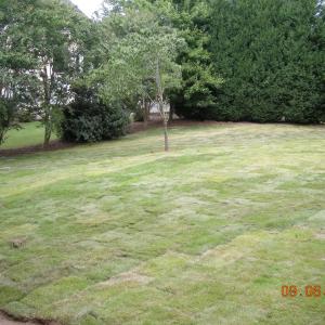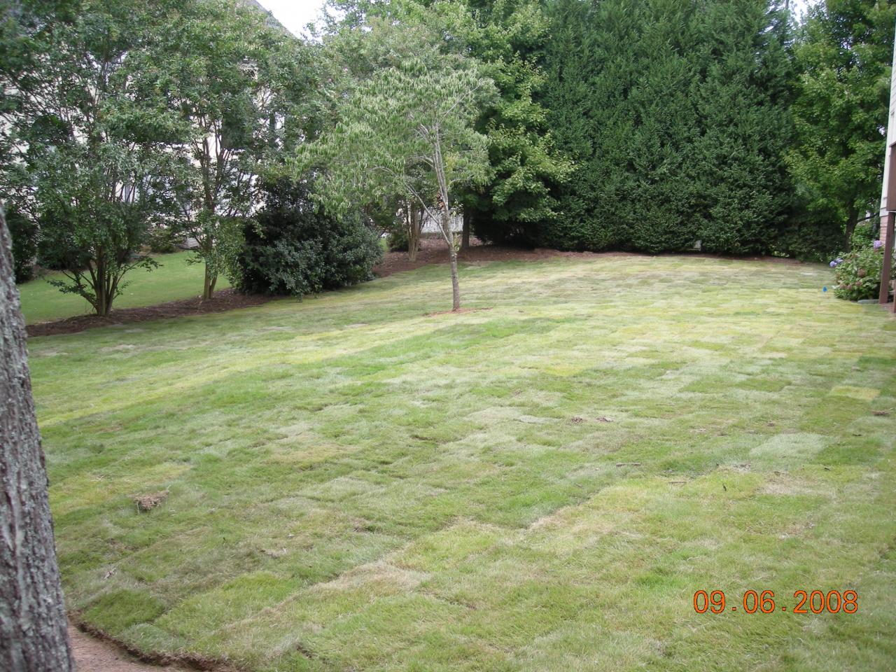 Installed drain from gutters to route water away from house and eliminate standing water problems. Installed Zeon Zoysia lawn.